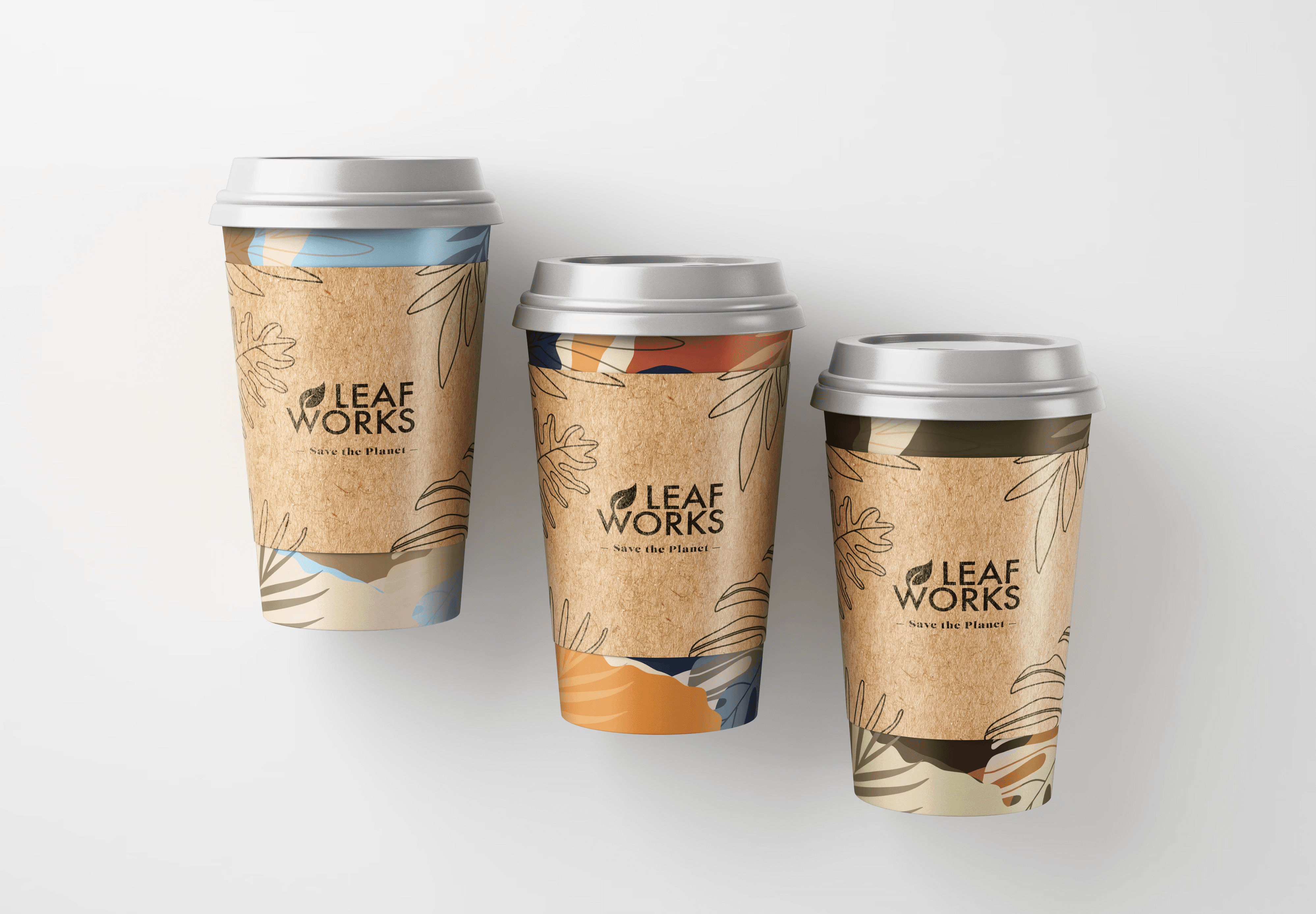 Für das Projekt LeafWorks entwickelte ich ein visuelles Erscheinungsbild, das Natürlichkeit, Klarheit und Nachhaltigkeit vereint. Ziel war es, eine Marke zu gestalten, die sowohl ökologisches Verantwortungsbewusstsein als auch modernes Design ausstrahlt. Das reduzierte, aber prägnante Erscheinungsbild zieht sich durch alle Medien – von Geschäftsausstattung über Kaffeebecher bis hin zur Außenbeschriftung – und schafft so eine konsistente, professionelle Markenidentität.